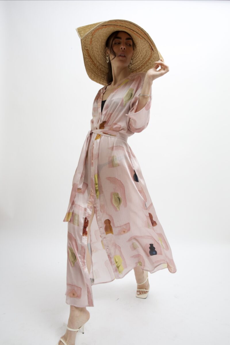 Inspired by the Wall art murals in Greece this is a painting by The KNLs in Aria dusty pink maxi dress-kaftan with this gorgeous print on silky fabric, is a wardrobe’s essential. It features one size buttoned line for every body-type fit and adjustable matching belt. Luxurious and stylish black maxi dress with sleeves, crafted from the finest silk satin fabric. Wear it a a kaftan as well! The breezy and relaxed cuff sleeves are slightly flared to create an elegant, fluid feel. The sculptural V neckline gives a sophisticated look and the side splits a sexy touch. We especially love that this black maxi dress with the gorgeous print has a minimalistic style, perfect for an evening or a cocktail dress. Our maxi dresses are made in Greece of mostly natural fabrics.