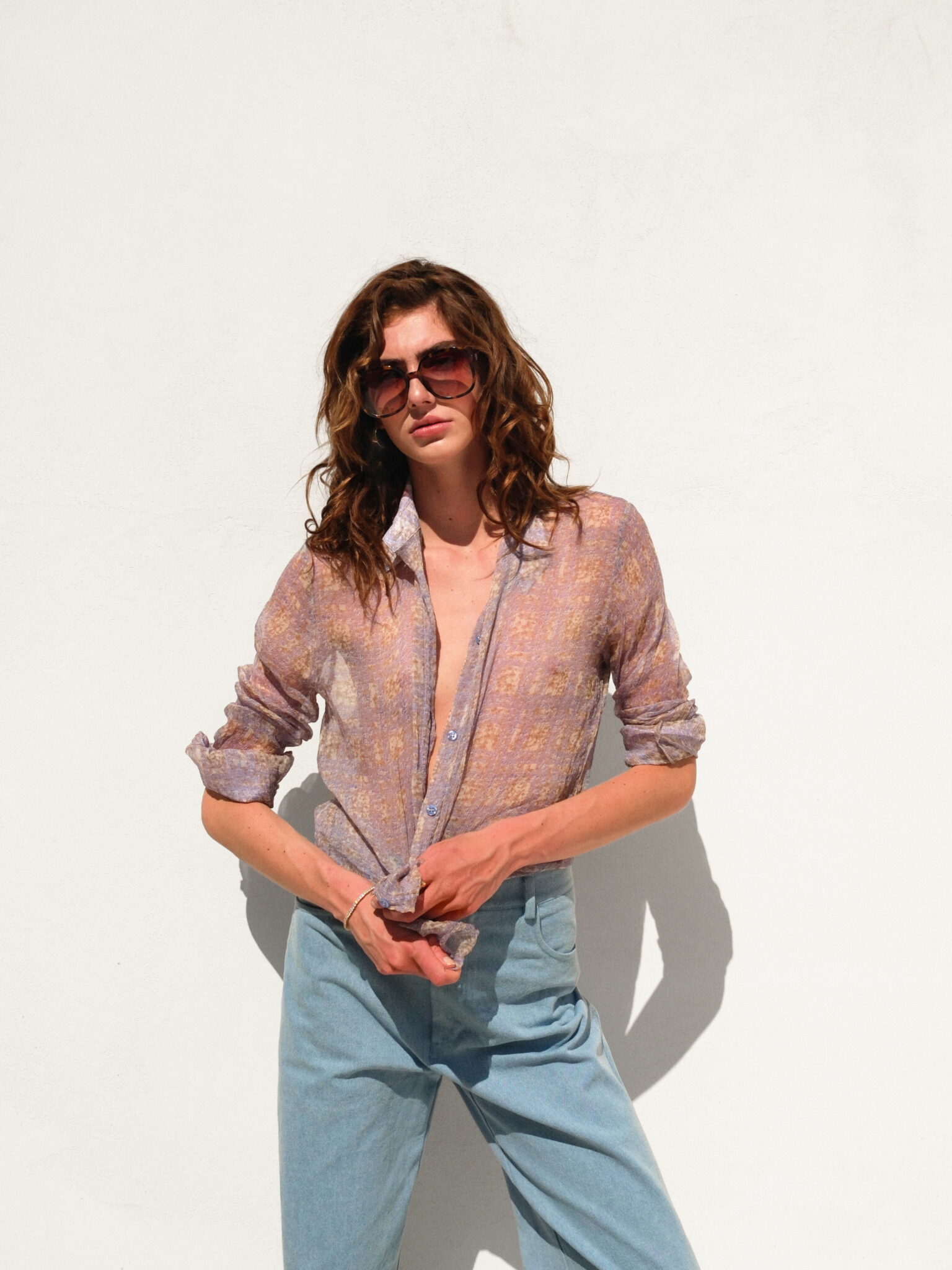 - Unique light blue & purple abstract print, inspired by soft summer hues
