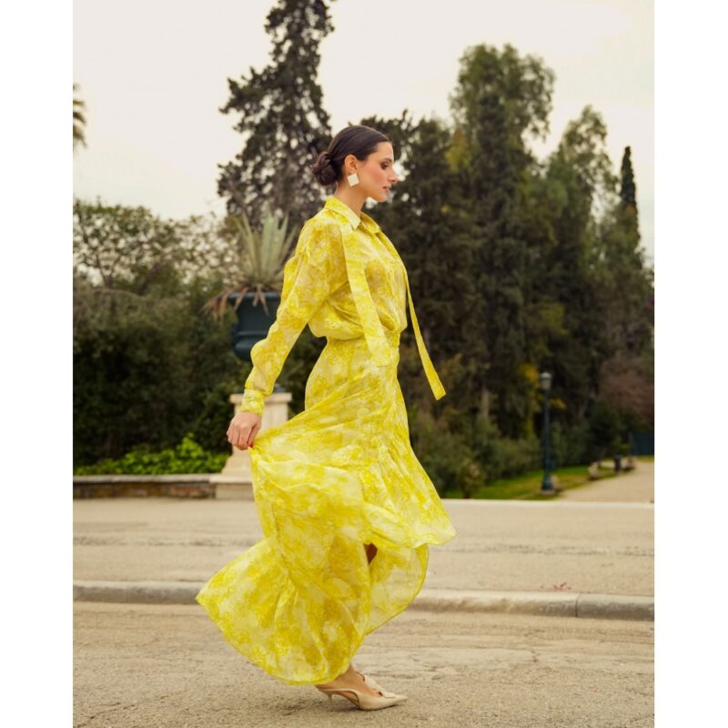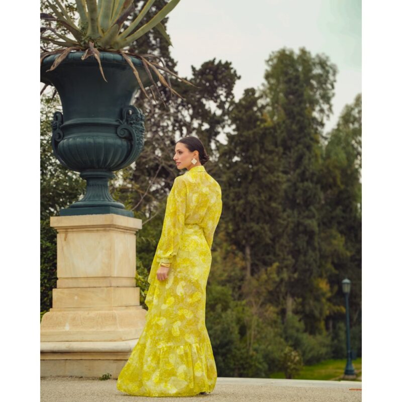 - Μάξι πολυμορφική φούστα με βολάν περιμετρικά που δένει κρουαζέ, κολακεύει τη σιλουέτα και αγκαλιάζει διακριτικά τη μέση, .