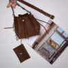 Handcrafted leather pouch bag . Comes with double strap. One leather strap and one chain strap. Comes with removable leather wallet.