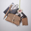 Handcrafted leather shoulder bag with carved nickel or gold metal details. Comes with double strap, one leather strap and one chain strap. Contains removable leather wallet.