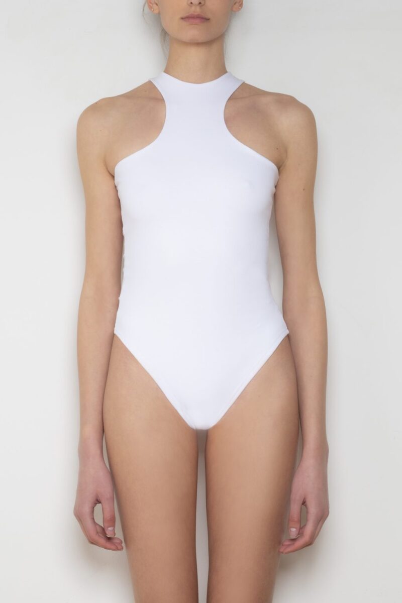 Cotton bodysuit: 96% cotton 4% elastaneMachine washableColour: WhiteSnap fastening at baseHandmade in Greece