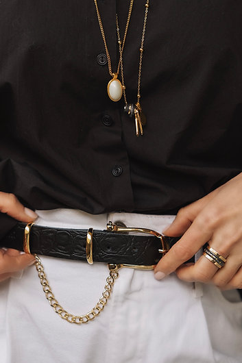Χειροποίητη δερμάτινη ζώνη με χρυσά ή νίκελ μεταλλικά στοιχεία και αλυσίδα