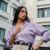 Handcrafted adjustable leather belt with gold or nickel metal details.