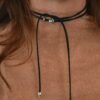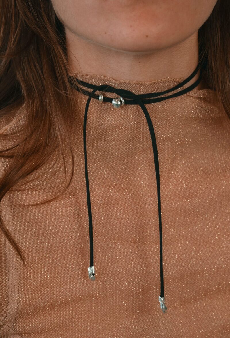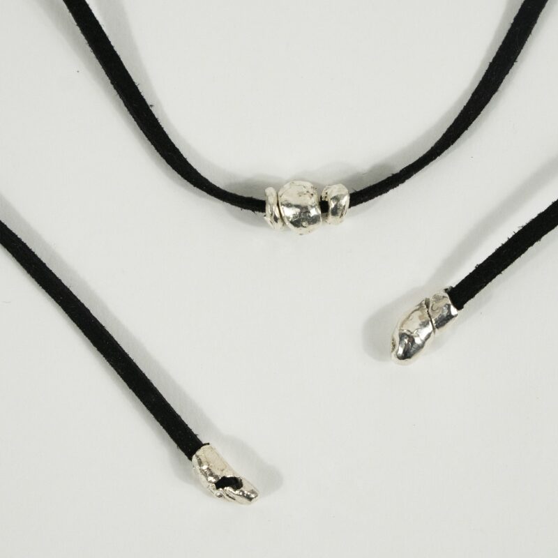 -A necklace made of silver parts spread on 1cm width faux suede.