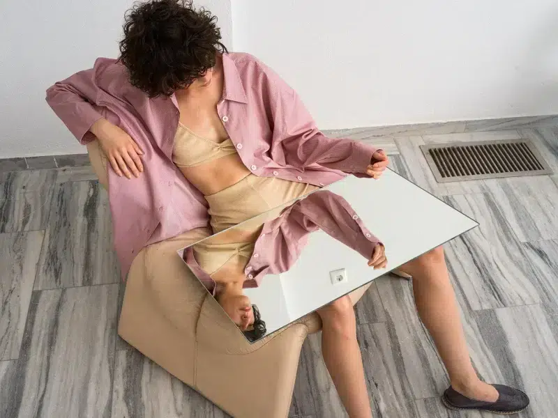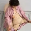 The Nude Shirt is oversized with mini, asymmetrical length. A great choice for an everyday outfit.