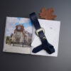 “Overjoyed” leather belt blue nickel
