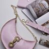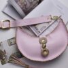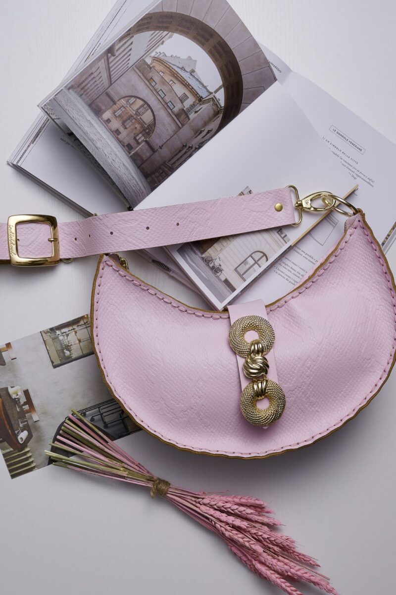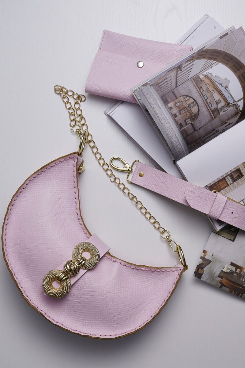 Handcrafted leather shoulder bag with carved gold metal details. Comes with double strap, one leather strap and one chain strap. Contains removable leather wallet.