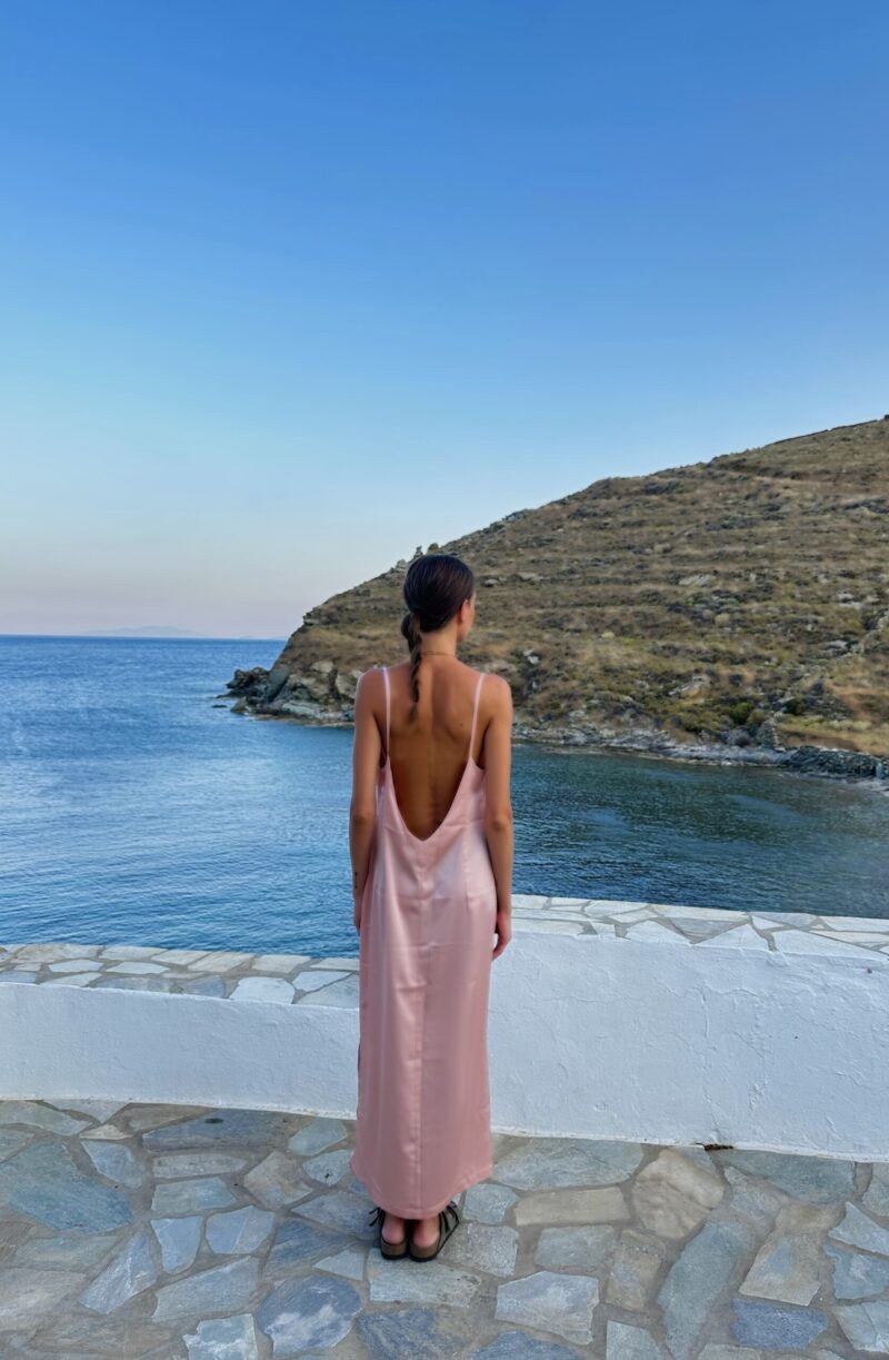 Ροζ πούδρα φόρεμα με χαμηλή πλάτη Deligh