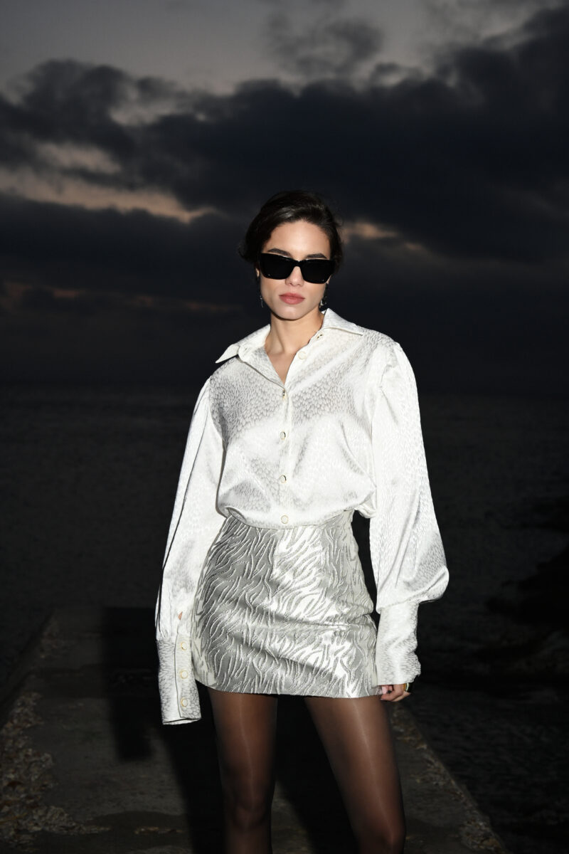 This stunning mini skirt combines modern glamour with luxurious craftsmanship. Made from a blend of 40% cotton, 40% polyester, and 20% silk, it offers a rich texture and subtle sheen that catches the light beautifully. The intricate metallic pattern adds a bold yet sophisticated touch, making it a standout piece for eveningwear or festive occasions. Perfectly tailored for a flattering fit, this skirt effortlessly elevates any look with a hint of opulence.
